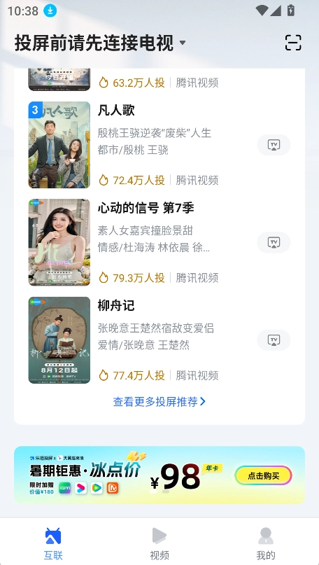 「视频投屏」功能支持超过10000种投屏场景,包括综合视频内容投屏、网盘文件与浏览器内容投屏、美韩剧内容投屏、斗鱼和虎牙等平台的直播投屏等;通过手机投屏至电视,还能让手机摇身一变成为电视遥控器。
