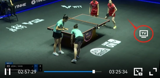 跳转至对应的视频播放页面后,点击TV按钮并选择指定的电视名称(投屏电视XX)完成连接,就能把赛事内容投射到大屏幕上观看;同时该功能还支持手机熄屏操作。