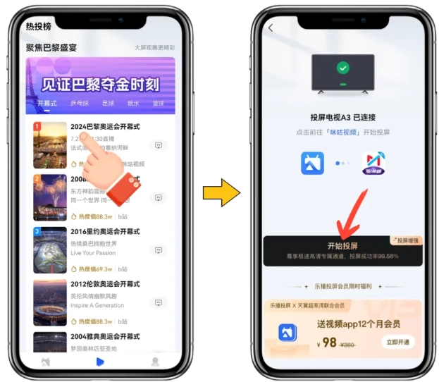 下面以投屏巴黎奥运会赛事为例,为大家演示乐播投屏如何投屏到电视,具体操作步骤如下:
