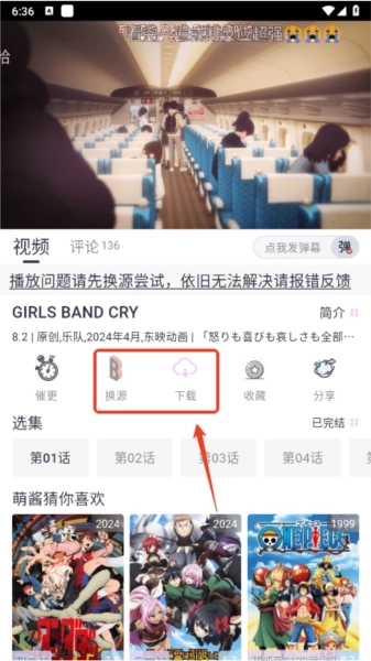 播放时,如果卡顿,可以点击换源或者下载视频到本地。