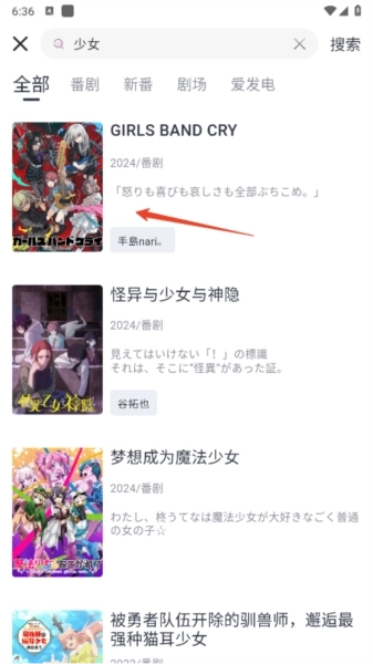 然后根据搜索结果,点击番剧;
