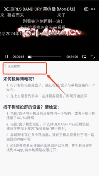 请确保手机和电视处于同一wifi下,否则可能搜索不到。