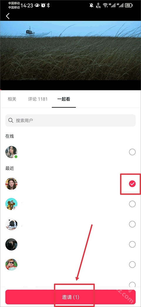 在放映厅里点开一部你喜欢的电影或剧集,接着在视频播放页面找到“一起看”功能,邀请你想一同观看的朋友,再点击发送邀请。