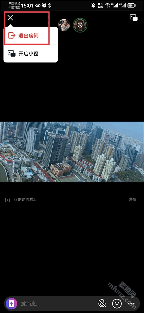 观影结束后,点击左上角的“X”按钮,接着选择“退出房间”,就能结束这次一起观看的体验了。