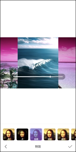 可以滑动底部的工具栏,对前景或背景图片进行添加特效、添加文字/模板等操作。
