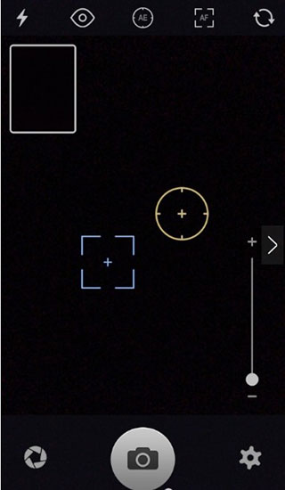 2、打开应用后,顶部依次为闪光灯控制、效果预览、自动曝光、自动对焦以及前后镜头切换功能。