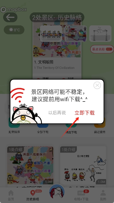 在连接WiFi的情况下,预先准备好我们计划游览景点的讲解资料。
