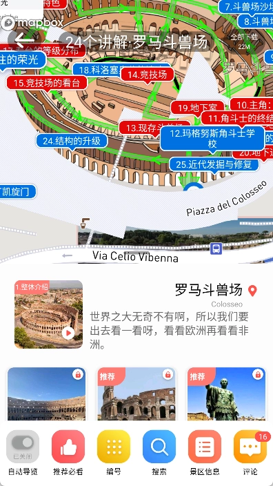 既能依据定位自动播放景点讲解,也支持手动选择景点进行讲解。