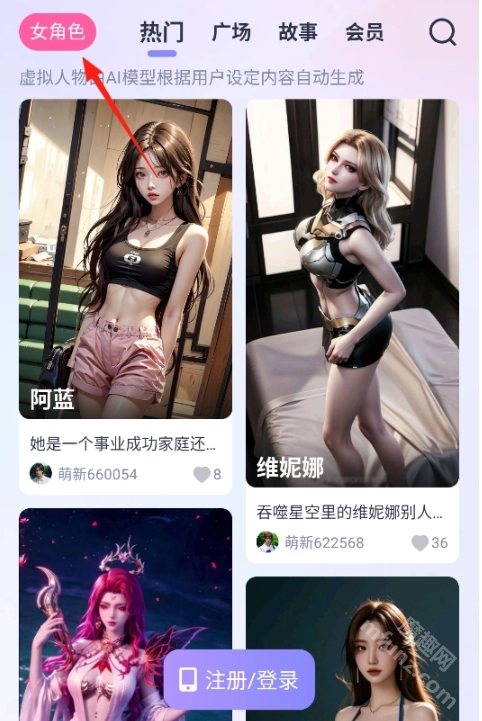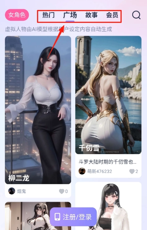 进入首页可查看热门角色推荐;