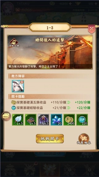 在战斗关卡挑战的前期,我们会不定时获得武将角色的奖励。