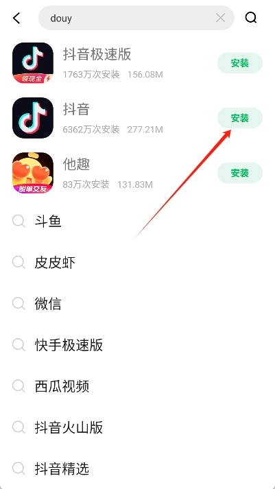 3、在搜索列表中找到需要下载的应用,点击“安装”按钮即可开始下载。