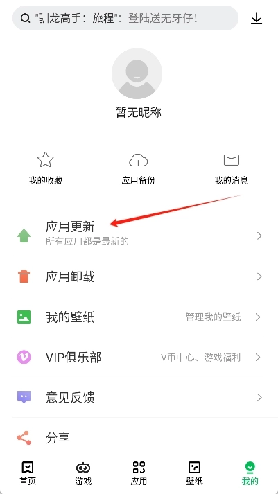 4、在“我的”页面中点击“应用更新”,选择需要更新的软件点击更新即可。