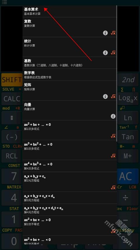 在模式页面选择【基本算术】