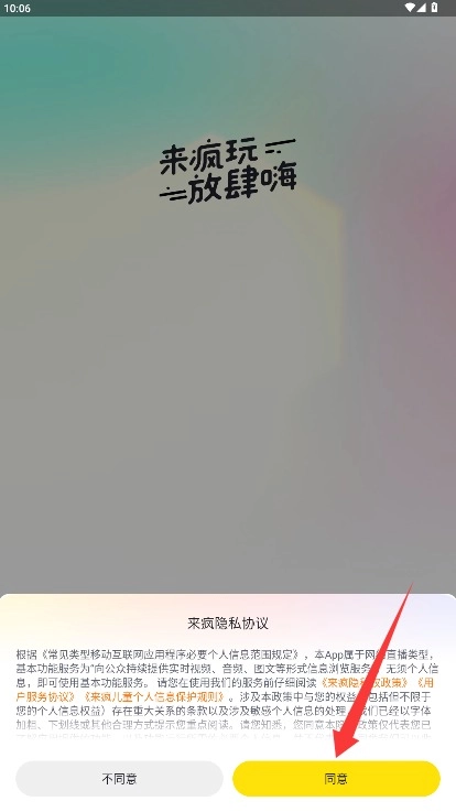 首次使用时,请仔细阅读用户协议与隐私政策,确认内容无误后,点击同意按钮即可进入登录界面。
