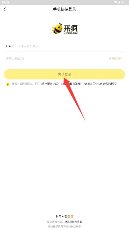 在登录页面填写手机号码与短信验证码,勾选同意相关协议后,点击确认登录按钮即可进入系统。