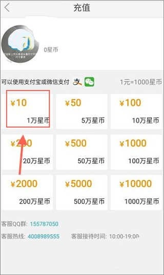 最后在【充值】页面中选择金额进行充值即可