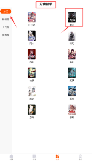 1、登录热读文库APP后,在首页点击"分类浏览"功能,进入小说类型选择页面。