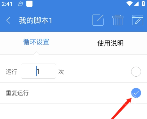 在弹出的菜单里,点击“重复运行”这一选项,就能把脚本设置成循环执行的模式。