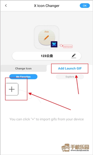 点击“add launch gif”按钮,接着点击加号图标,添加新的GIF动图,这样在新应用图标启动的瞬间,就能播放趣味十足的GIF动画了。
