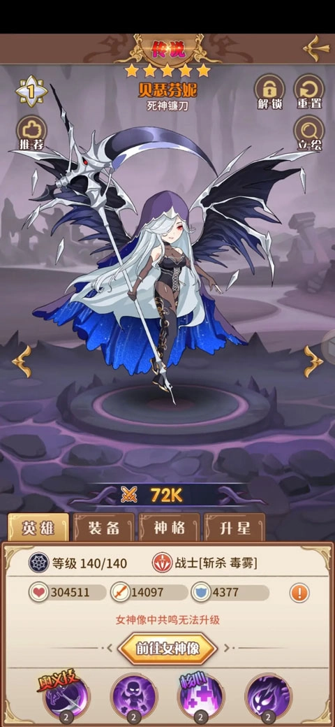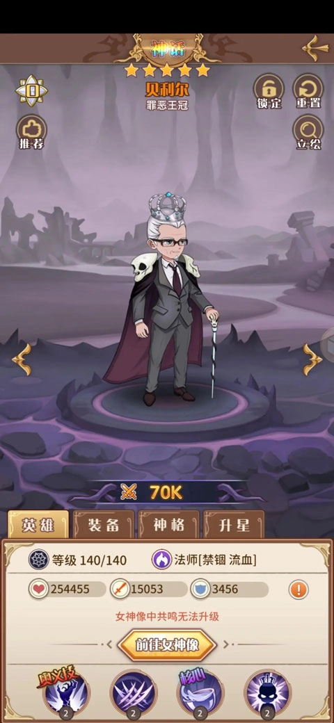 地狱阵营的养成思路:善恶天平、罪恶王冠、死神镰刀、骨弓这几个英雄,优先培养本体数量多的(如果能拉到九星是最佳选择)