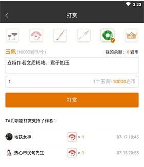 确认打赏:挑选您希望打赏的金额或者玉佩数量,点击“打赏”按钮来确认该操作。