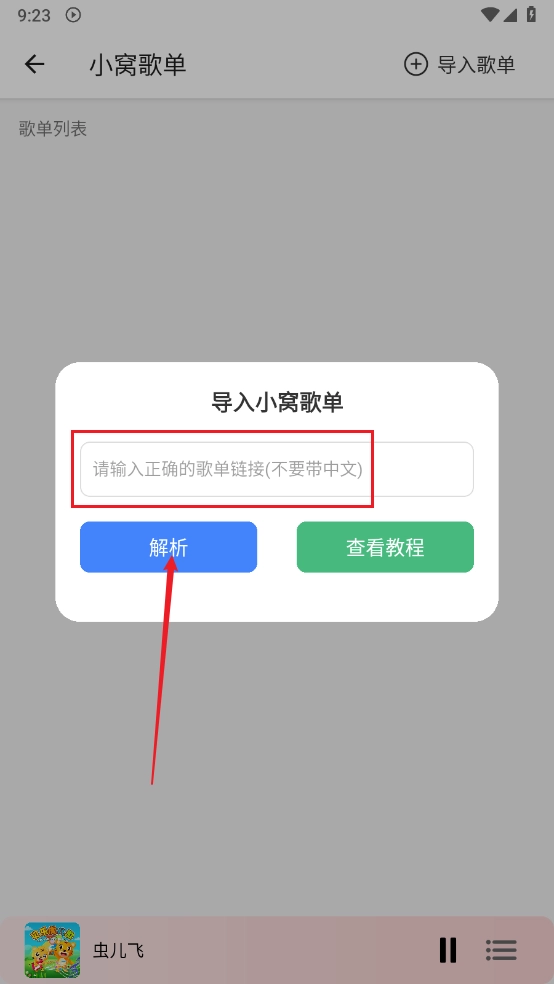 请确认复制的歌单链接是否包含中文,若有不相关的中文内容,请将其删除,仅保留链接部分。