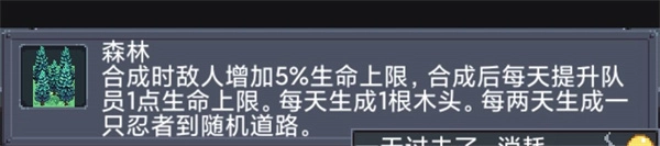己方每日增加血量上限,赠送木头,且每日产出一名忍者。
