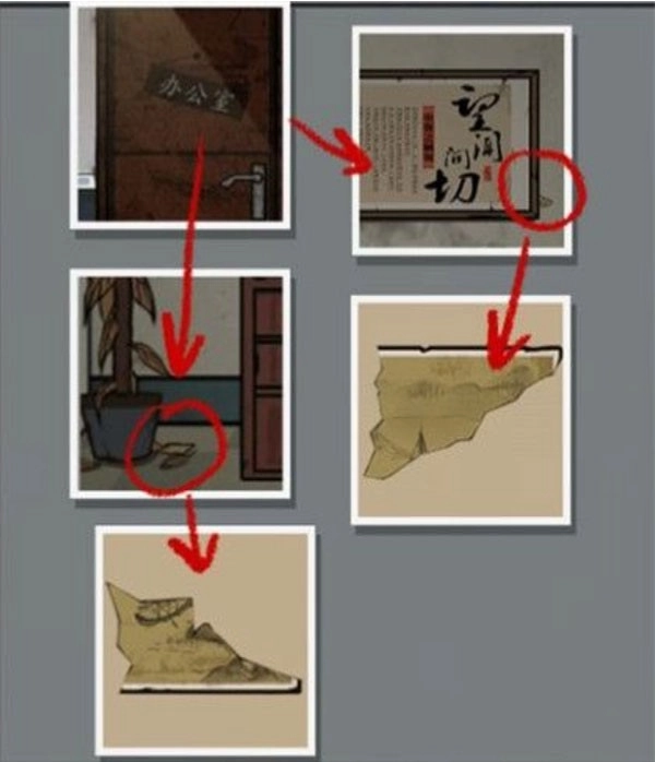 进入办公室后,先到“望闻问切”牌那里拾取明信片碎片4,再从植物所在的位置获取明信片2。
