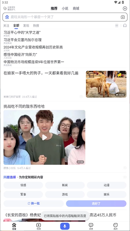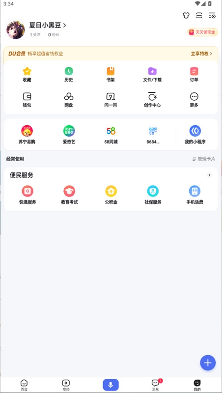 首页底部设有视频频道的快速入口,这里汇聚了海量的明星娱乐、搞笑段子与经典剧集视频。此外,你还可以通过拍摄小视频来记录身边的新鲜事,操作简单便捷,既能观看视频又能轻松创作。
