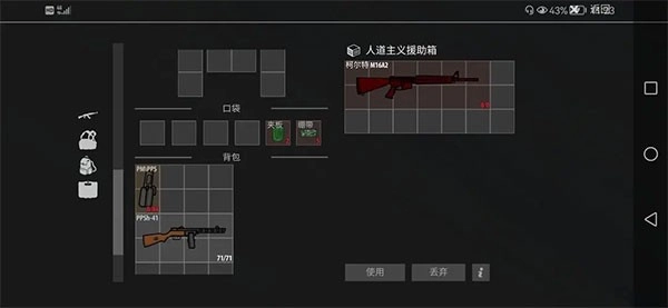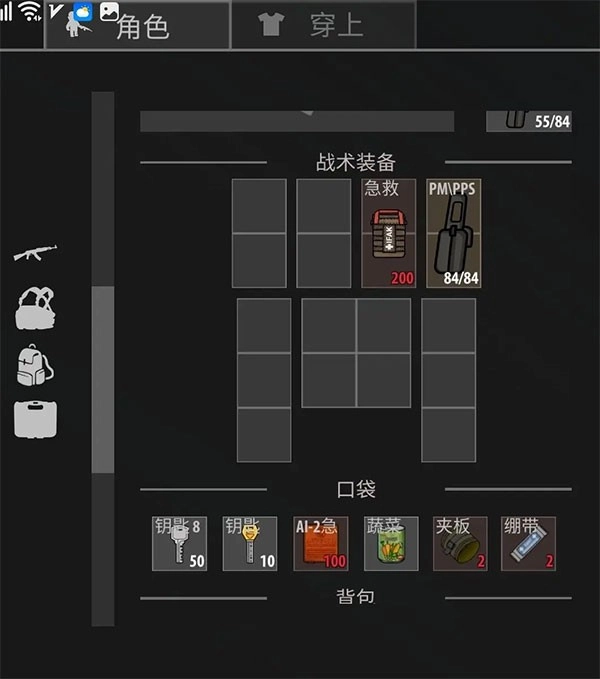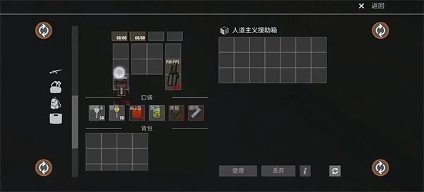 配置清单如下:头盔一顶、顶配背包一个、少量药品、一罐蔬菜罐头,以及一把满配PM手枪,另附额外一匣弹鼓。