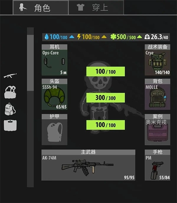 白手起家(头盔、战术背心、背包、副武器、少量药品)