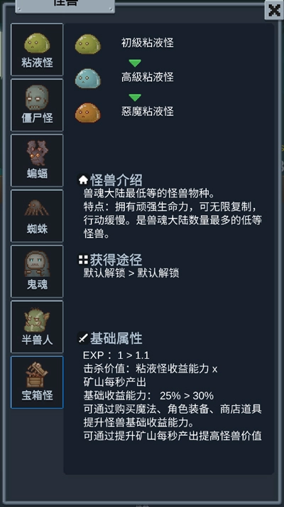 听说这里有怪兽是一款像素风格的放置挂机玩法休闲游戏,注意:这款游戏是单机游戏,没有氪金选项,因此装备需要全靠玩家自己打怪刷取。玩家将在游戏中前往兽魂大陆:据说这里有有永远击杀不完的怪兽,作为一为懂得可持续发展的勇者,玩家可在游戏中雇佣矿工来开采矿石,赚取财富的同时升级自己的装备并购买强力的道具,通过不断地战斗来刷取等级,提升属性并解锁技能,等到自己的实力足够强大以后,便可前去挑战强大的BOSS,掠取更多的财富,让自己在这片大陆赚个盆满钵满。听说这里有怪兽的战斗与开采等操作均是自动完成,玩家仅需通过点击指派并等待完成即可轻松收菜,让玩家在挂机中也能够迅速提升实力。喜欢挂机类玩法的游戏玩家千万不要错过,快快游戏体验吧!
