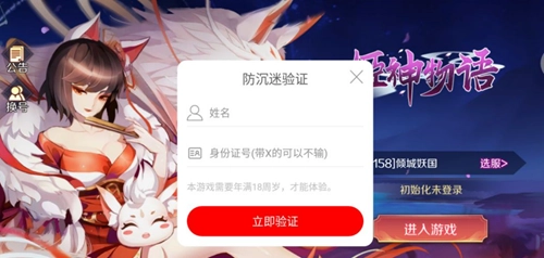 首先我们登录进入游戏后,会显示本游戏的防沉迷系统界面,大家记得填写相关信息,这一点非常重要。