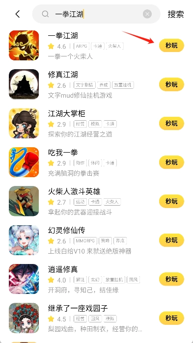 在游戏列表里点击游戏图标,或者点击“秒玩”按钮,就能直接开始体验游戏了。