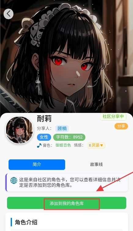然后点击添加到我的角色库