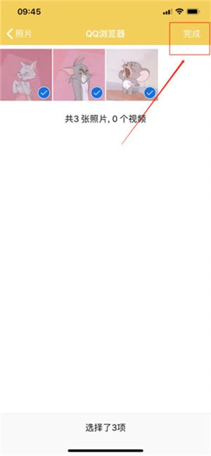 进入手机相册界面,把要打包的照片都选中,点击“完成”,就像下面这张图显示的那样。