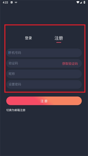 进入豚豚剧的登录界面或注册界面,填写你的手机号或者电子邮箱地址