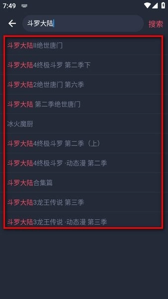当然,大家也可以直接搜索想看的动漫,像斗罗大陆这类,搜索时会出现多个下拉推荐。