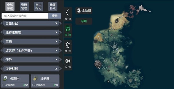 综合资源信息:涵盖游戏内的各类资源,如音箱、宝箱、谜题等,助你便捷了解各区域的资源分布状况。