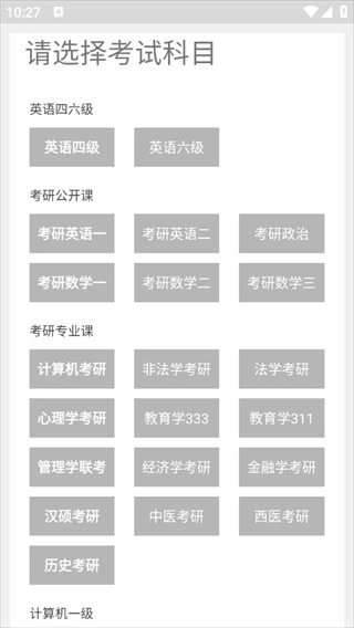在首页点击右上角的“+”号进入,也能挑选考试科目开展专项训练。