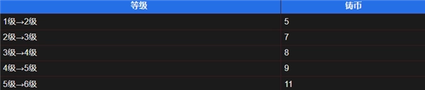 点击鲍勃头像左边的按钮,就能升级酒馆。酒馆的星级越高,刷新后有可能出现的随从星级就越高,数量也会增加。升级酒馆所需的铸币数量如下表所示,每个回合会减少1点。