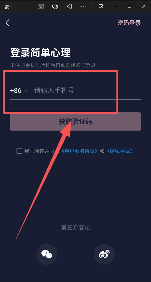 用户第一次使用时,需打开简单心理应用,借助个人手机号码完成注册与登录操作。这一步是使用所有功能的前提,能保障用户信息的安全以及服务的个性化体验。