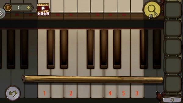 玩家先用钥匙打开钢琴,接着按下所有琴键,就能获得木棍。之后玩家用木棍取下吊灯上的信封,再从信封里取出唱片。