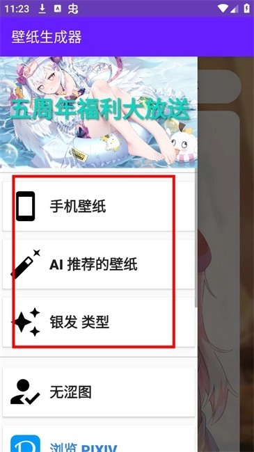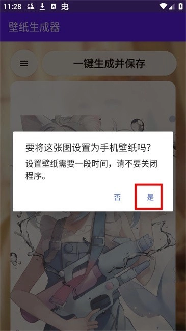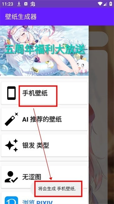 这里拿“手机壁纸”来举例,点击后就能看到“将会生成手机壁纸”的提示信息。