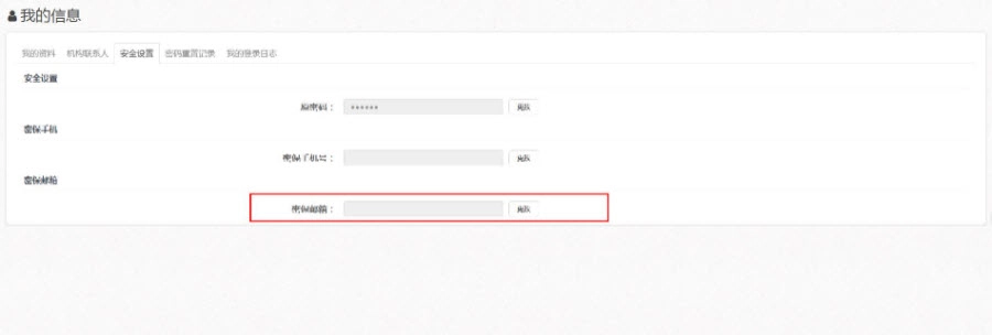 在安全设置页面,您能够完成密保邮箱的绑定以及更改已绑定邮箱的操作,具体情况可参考下图。