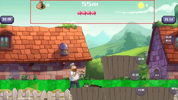 游戏界面的上方会展示当前拥有的金钱数额、剩余的生命次数、积累的太阳能量值以及已经行进的距离。其中,太阳能量值需要通过击倒丧尸来获得。