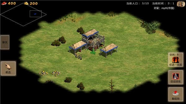进入游戏后,既可以单独选中农民,也能点击框选按钮来选择一定范围内的农民。