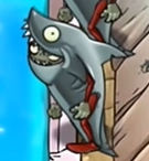鲨鱼僵尸只会在水域里现身,处于潜水状态时,它会马上吞掉碰到的第一株植物,之后浮出水面开始咀嚼。