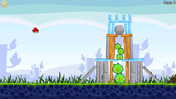 首先第一种是如下所示的红色小鸟,这种愤怒的小鸟很勇敢,但最普通,只需你用弹弓发射出去打中目标就可以!这种小鸟适合攻击猪堡中的木材结构!
