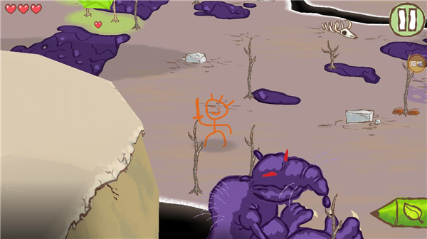 9、当碰到怪兽的时候,玩家可以在怪兽旁边的树上画点树叶,怪兽就会消失。